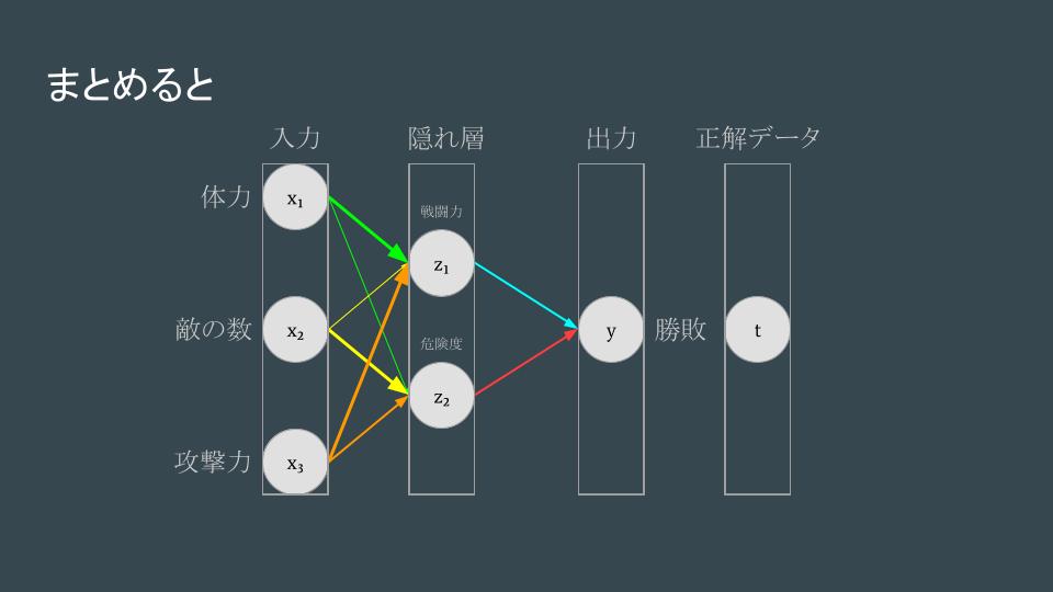 今回は何年も前から広く使われているニューラルネットワークを今更ながら題材に、ゲームのデータを例にしながら、推論・損失関数・誤差逆伝播といった学習の流れを、数式と具体的な数値を用いて説明しました。